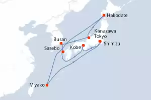 Itinerario : Tokyo, Shimizu, Kobe, Sasebo, Busan, Kanazawa, Hakodate, Miyako, Tokyo