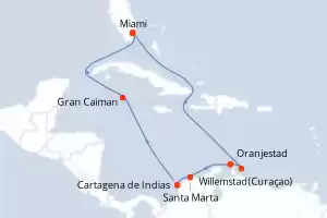 Itinerario : Miami, Willemstad(Curaçao), Oranjestad (Aruba), Santa Marta, Cartagena de Indias, Gran Caiman, Miami