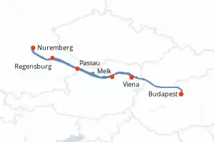 Itinerario : Budapest, Nuremberg, Budapest, Nuremberg, Viena, Regensburg, Melk, Passau, Melk, Passau, Viena, Regensburg, Viena, Nuremberg, Budapest, Nuremberg, Budapest