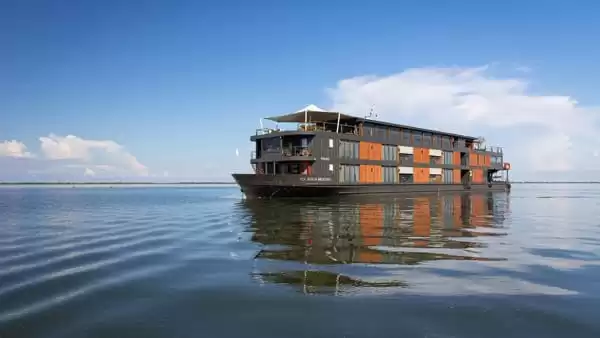 Gracias a su tamaño reducido y calado adaptado, el barco accede a zonas apartadas y ofrece vistas espectaculares de las orillas del Mekong, sus bosques inundados, sus pueblos flotantes y sus paisajes agrícolas en constante evolución. Dispone de espacios comunes amplios y acogedores, distribuidos en varios niveles: piscina infinita con vista al río, rooftop lounge, gimnasio, área de yoga, sala de proyecciones, biblioteca, sala de masajes y boutique de diseñadores locales. La relación tripulación/pasajero es de 1:1, lo que garantiza un servicio atento, discreto y profesional en todo momento.