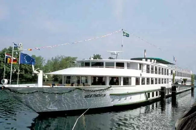 Construido en 2.004, el MS Beethoven fue completamente remodelado en 2.010. Tiene 110 metros de eslora por 10 de manga y, gracias a sus 90 cabinas, puede transportar hasta 180 pasajeros. Su tripulación, compuesta por 30 hombres y mujeres, garantiza el buen funcionamiento del barco y la comodidad de los viajeros en las cuatro cubiertas del buque. Su cuidadosa remodelación le ha valido la categoría de Cuatro Anclas (estrellas de navegación fluvial).