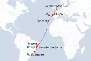 Itinerario : Rio de Janeiro, Ilheus, Salvador de Bahia, Maceió, Funchal, Vigo, Gijón, Southampton