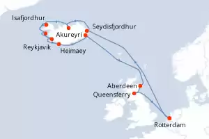 Itinerario : Reykjavik, Heimaey, Djupivogur, Aberdeen, Queensferry, Rotterdam