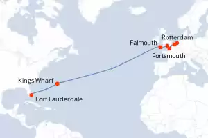 Itinerario : Fort Lauderdale, Kings Wharf, Falmouth, Portsmouth, Le Havre, Zeebrugge, Rotterdam