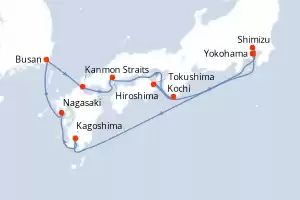 Itinerario : Yokohama, Kagoshima, Nagasaki, Busan, Kanmon Straits, Hiroshima, , Kochi, Tokushima, Shimizu, Yokohama