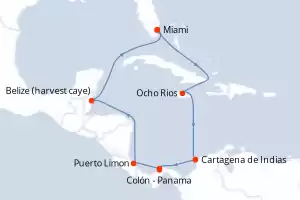 Itinerario : Miami, Ocho Rios, Cartagena de Indias, Colón - Panama, Canal Panama - Lac Gatun, Puerto Limon, Belize (harvest caye), Miami