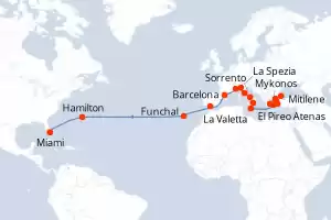 Itinerario : El Pireo Atenas, Mykonos, Bozcaada, Estambul, Mitilene, Kusadasi, La Valetta, Messine, Sorrento, Civitavecchia - Roma, La Spezia, Monaco Monte-Carlo, Barcelona, Malaga, Funchal, Hamilton, Miami