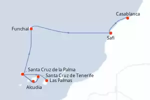 Itinerario : Las Palmas, Santa Cruz de la Palma, Alcudia, Santa Cruz de Tenerife, Santa Cruz de la Palma, Funchal, Safi, Casablanca
