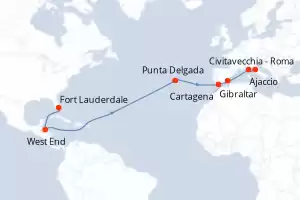 Itinerario : Fort Lauderdale, West End, Punta Delgada, Gibraltar, Cartagena, Ajaccio, Civitavecchia - Roma