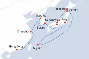Itinerario : Tokyo, Miyako, aomori, Hakodate, Kanazawa, Maizuru, Sakai-Minato, Busan, Incheon, Shanghai, Hong Kong