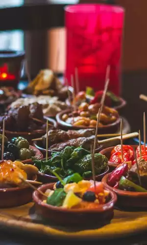 La propuesta culinaria se apoya en 6 restaurantes y 7 bares con identidades bien diferenciadas. Los menús destacan la gastronomía ibérica y mediterránea, complementados con demostraciones culinarias y degustaciones de productos regionales. Los diferentes espacios del barco — desde el auténtico bar de tapas hasta el café acogedor, pasando por elegantes bares de cocteles — permiten disfrutar especialidades locales, vinos españoles o cervezas regionales en cualquier momento del día, sin código de vestimenta obligatorio.
