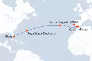 Itinerario : Miami, Royal Naval Dockyard, Punta Delgada, Malaga, Cadiz, Lisboa